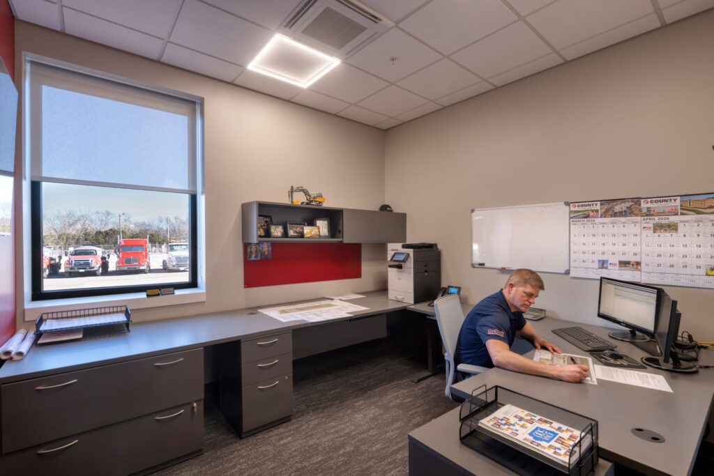 The project was a remodel of an existing 8,590 SF store building. The newly remodeled space is now a fully sprinklered office building. The exterior wall construction is concrete masonry units and the roof is constructed with a concrete âTâ system. The existing exterior walls were insulated and clad with new metal panels. The aluminum storefront infills the existing wall openings, and a new, single-ply roof system was added.