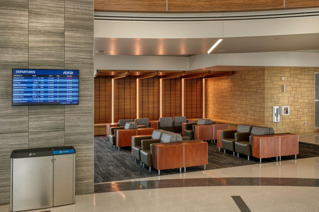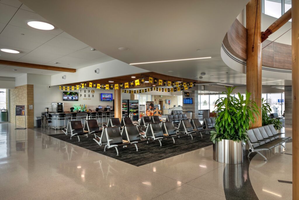 The Eastern Iowa Airport Phase IV Terminal Remodel includes remodeling the current terminal and adding 32,000 square feet of space, including four additional jet bridges, a larger patio, a sensory room and a pet relief area. The Eastern Iowa Airport (CID) is the state’s second largest airport in Iowa, with nearly 30 percent of the state’s passenger traffic use for business and leisure travel. With the expansion of the terminal, CID now has 13 gates/jet bridges. The airport also boasts a growing cargo operation, with the three cargo carriers handling almost 50 percent of the state’s air cargo. CID handled a record-breaking 1.5 million total passengers in 2024 and is on track to surpass that number in 2025.